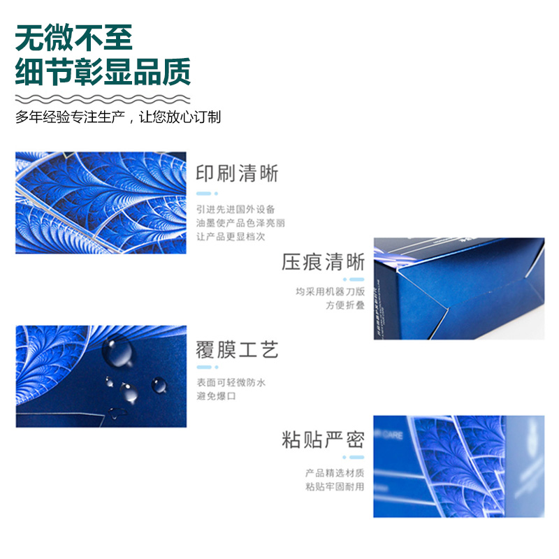 常用工藝:覆膜(啞膜、光膜)、壓紋、凹凸印、局部uv、燙銀、燙金、印專色(PANTONE色)、鏤空、鐳射、打孔、疊印、絲網(wǎng)印、透印、過(guò)光油、啞油等